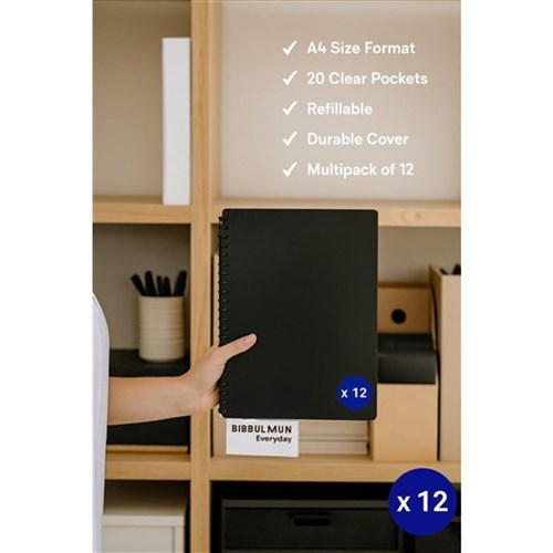 Bibbulmun Display Book A4 Refillable 20 Pocket Black Pack Of 40