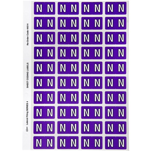 Avery Alphabet Coding Label N Side Tab 25x42mm Purple Pack Of 240