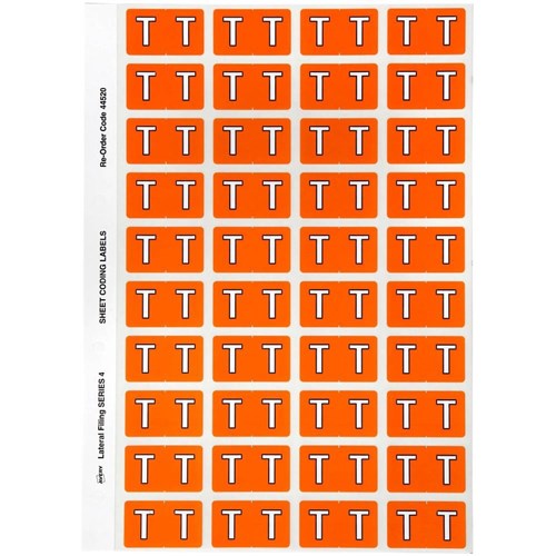 Avery Alphabet Coding Label T Side Tab 25x42mm Orange Pack Of 240
