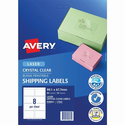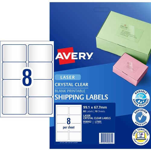 Avery Crystal Clear Laser Address Labels 99.1x67.7mm 8UP 80 Labels 10 Sheets