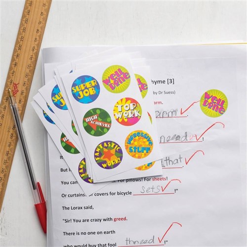 Avery Merit Stickers Caption 2 Round 22mm 5 Designs Assorted Colours 300 Stickers