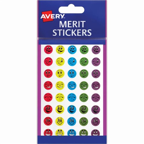Avery Merit Stickers Smiley Faces Round 43mm Assorted Colours Pack Of 102