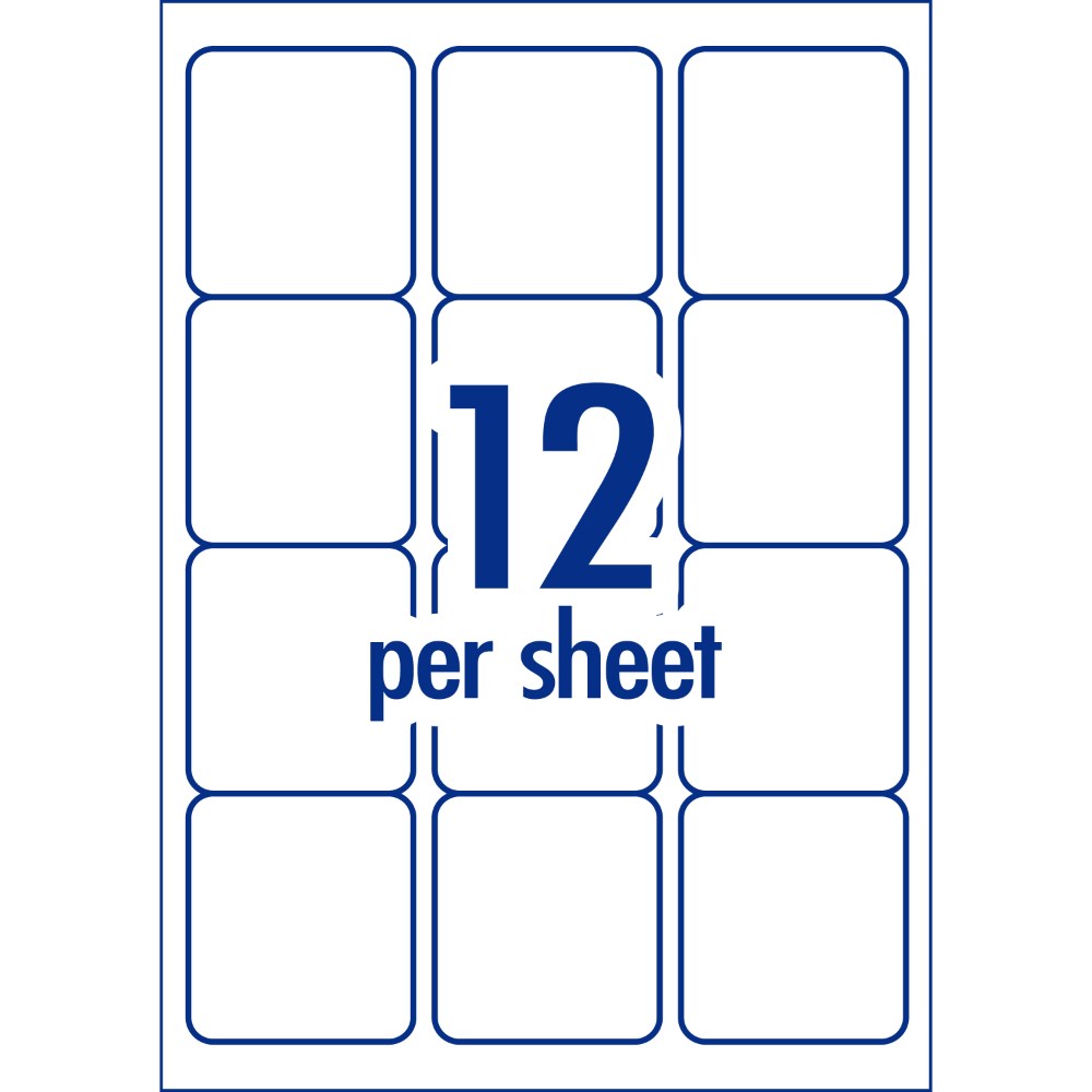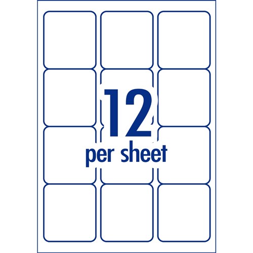 Size: 63.5 x 72mm, 600 labels, 50 sheets, 12 labels per sheet (12UP).