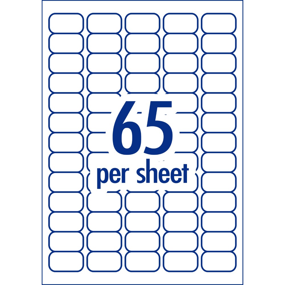 Size: 38.1 x 21.2mm, 1300 labels, 20 sheets, 65 labels per sheet (65UP).