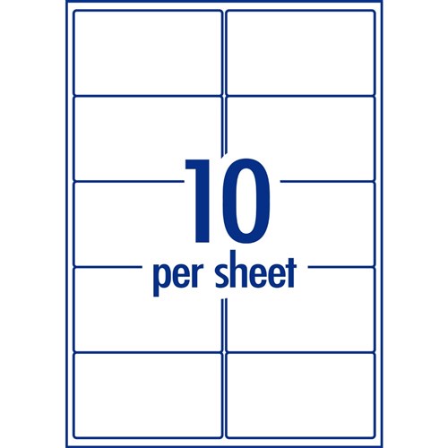 Size: 99.1 x 57mm, 1000 labels, 100 sheets, 10 labels per sheet (10UP).
