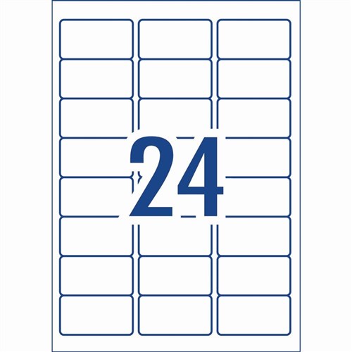 Size: 64x33.8mm 2400 labels, 100 sheets. 24 labels per sheet (24UP).