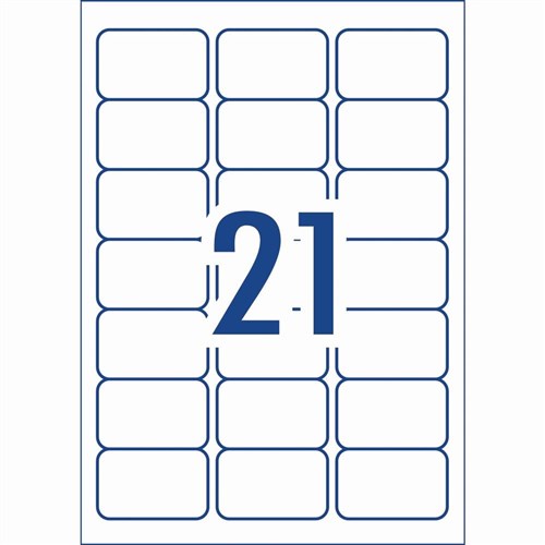 Size: 63.5x38.1mm 2100 labels, 100 sheets. 21 labels per sheet (21UP).
