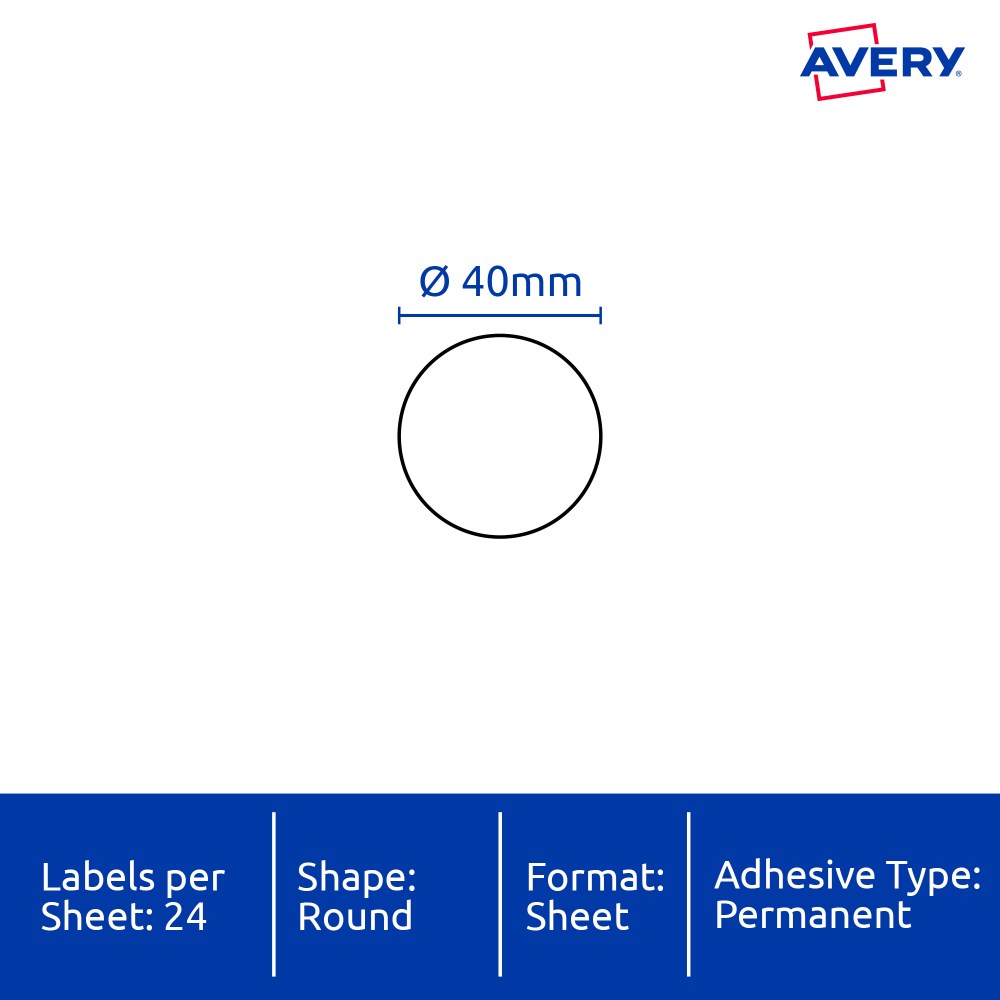 Avery Round Laser Heavy Duty Labels 24 Sheet White 40mm Diameter