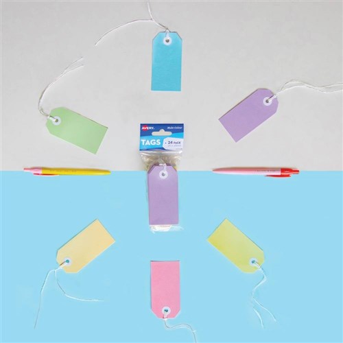 Avery Scallop Tags 96x48mm Pastel Multi-Colour Pack Of 24