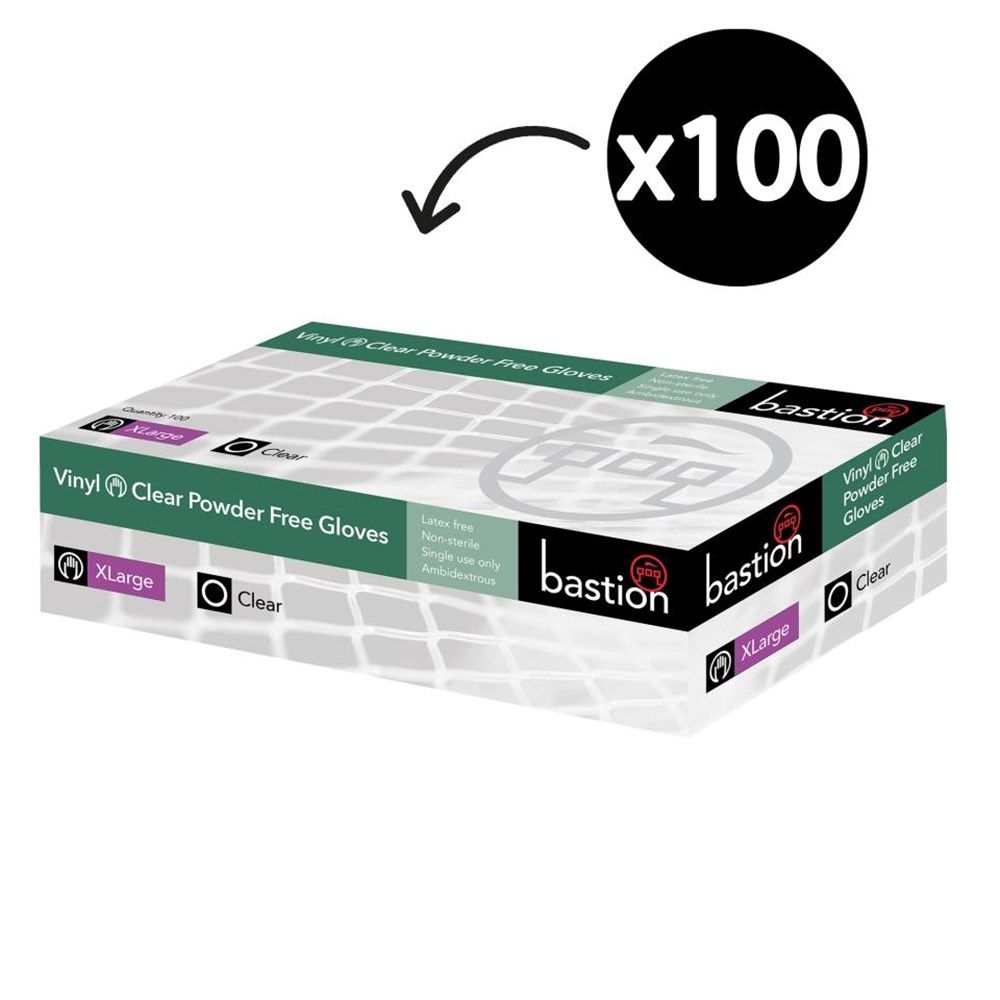 Bastion Vinyl Powder Free Gloves Food Grade Clear Size XL Box 100
