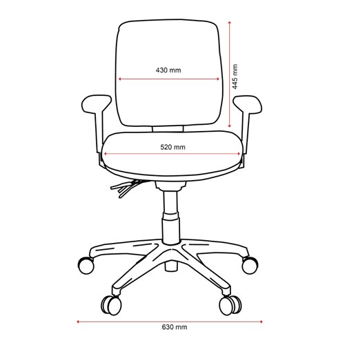 Armrests. Ratchet height adjustable back/lumbar.
