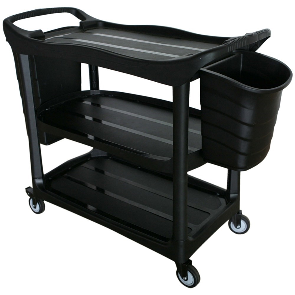 Cleanlink Utility Trolley 3-Tier Trolley Without Buckets Black