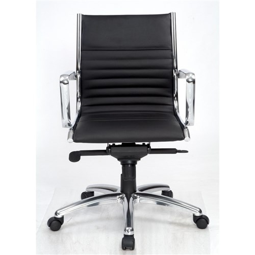 Cogra Executive Medium Back Meeting Chair Chrome Frame And Arms Black Leather