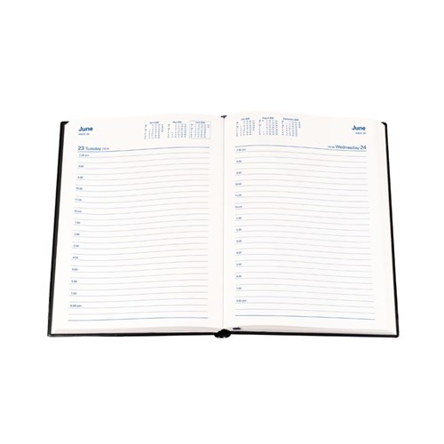 Bound in a highly durable, welded PVC padded cover. Printed on white paper, week numbers and Julian days.