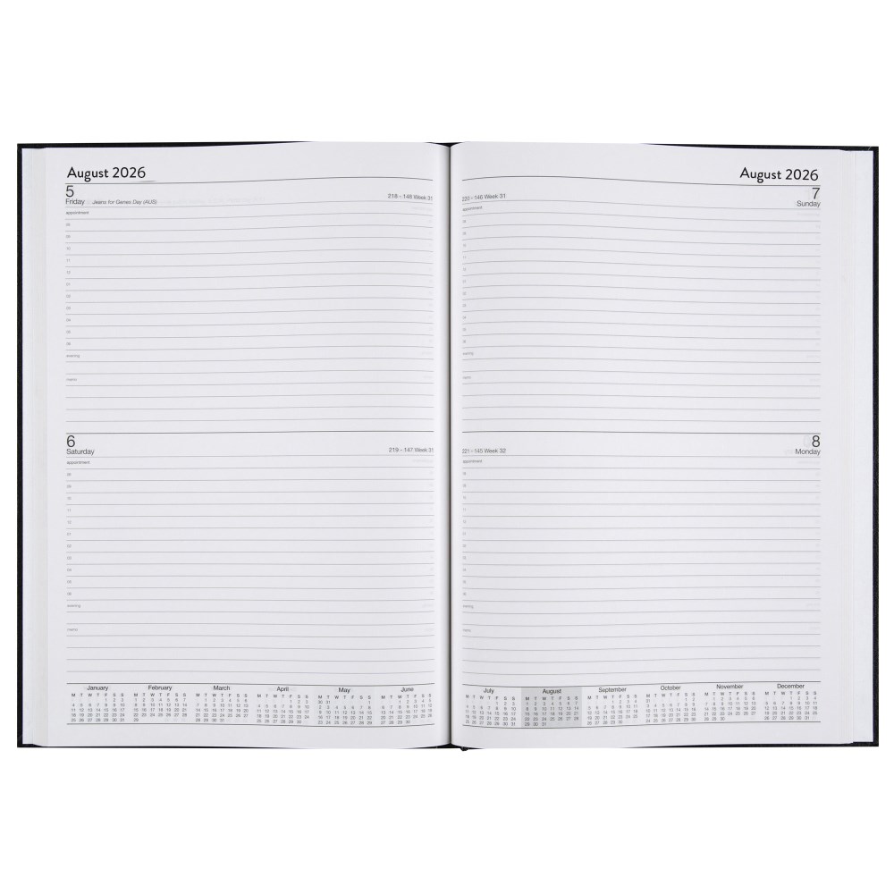 Two days per page layout diary to keep track of appointments, meetings, and other important events.