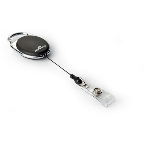 Durable Name Badge Reel Style With Snap Button Strap 80cm Black Pack Of 10