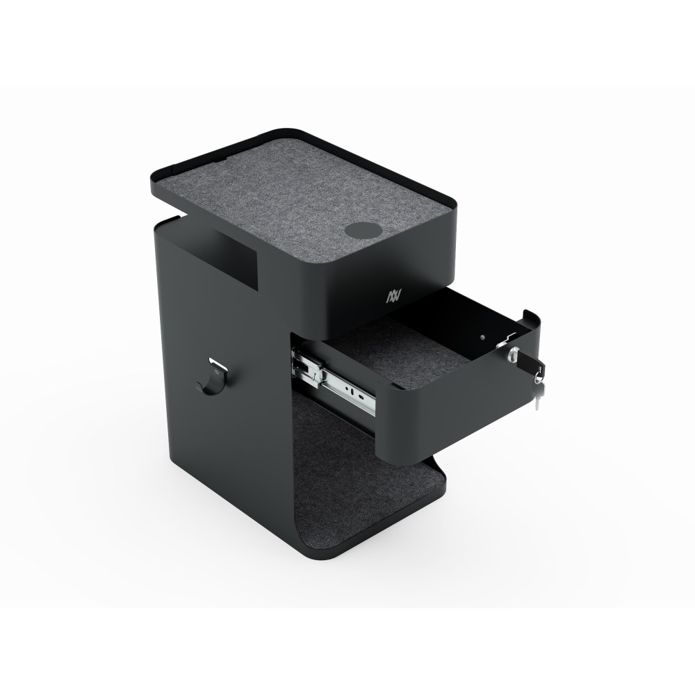 Soft closing lockable drawer.