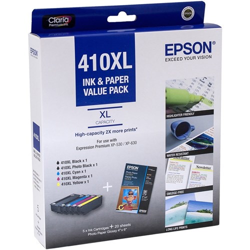 Epson 410XL Claria Premium Ink Cartridge High Yield Value Pack Of 5 Assorted Colours
