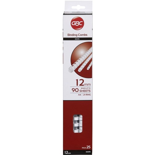 GBC Plastic Binding Comb 12mm 21 Loop 90 Sheets Capacity White Pack Of 25