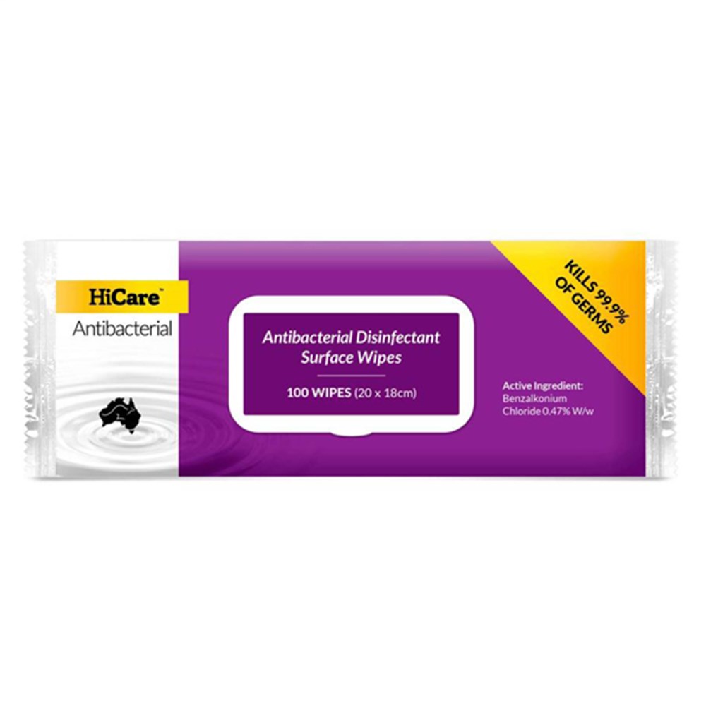 HiCare Antibacterial wipes kill 99.9% of germs at their source and are for use on hard surfaces only