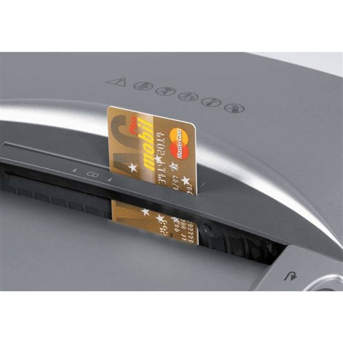 Shreds staples pins and credit cards.