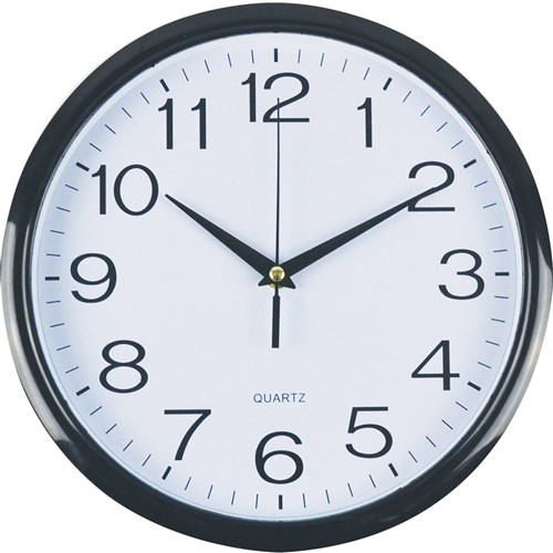 Italplast Wall Clock 30cm Round With Large Numbers Black Frame White Plastic Face