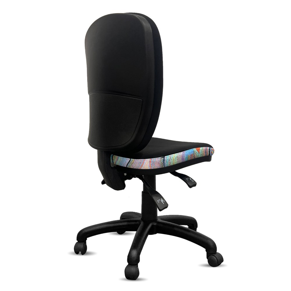 A unique commercial fabrics designed by Liddy Napanangka Walker (Indigenous Artist) combined with K2 Black Fabric to upholster the chair.