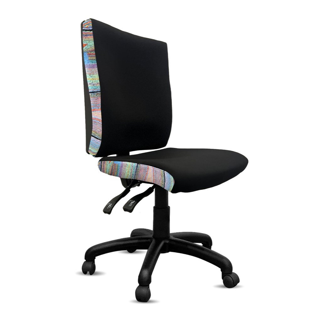 • A unique commercial fabrics designed by Liddy Napanangka Walker (Indigenous Artist) combined with K2 Black Fabric to upholster the chair.