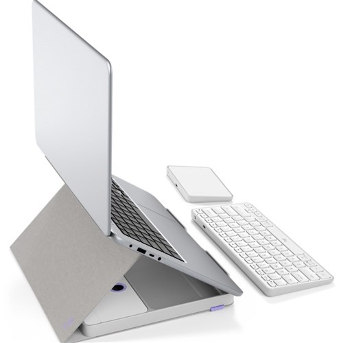 One compact kit with a wireless keyboard, wireless touchpad and a book-like case that transforms into a laptop stand.