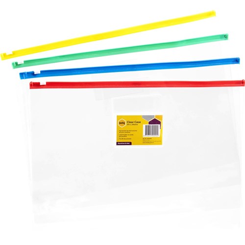 Marbig Clear Case A4 335 x 245mm With Coloured Zip Assorted