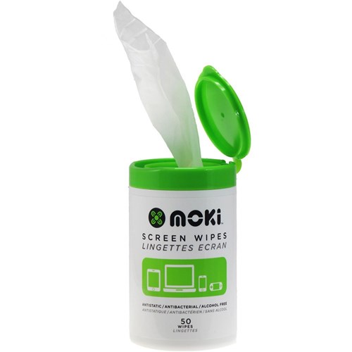 50 pre moistened wipes, ideal for cleaning grime and fingerprints from smartphones, tablets and portable devices.