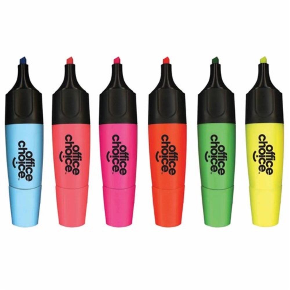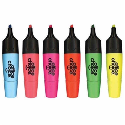 Office Choice Highlighters Chisel 1-5mm Assorted Colours Pack Of 6