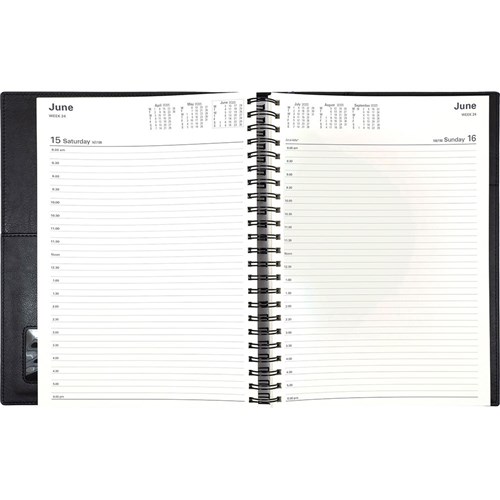 Twin wiro allows you to lay the diary flat on your desk.