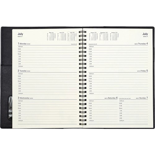 Twin wiro allows you to lay the diary flat on your desk.