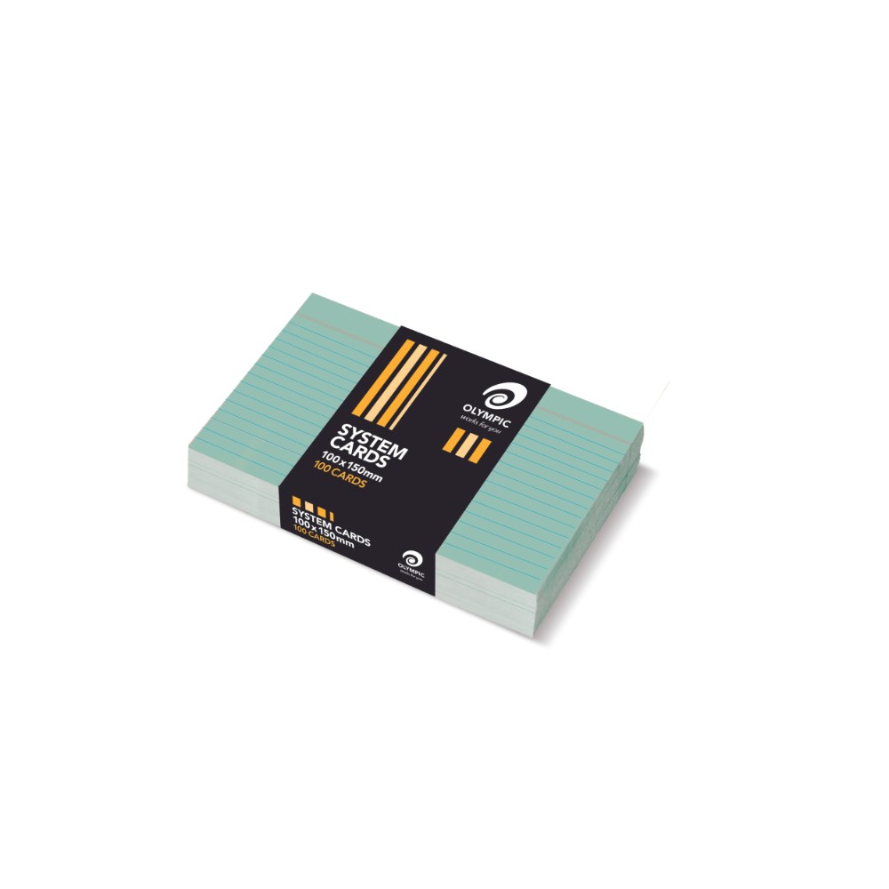 Olympic System Cards 100 x 150mm Ruled Green Pack Of 100