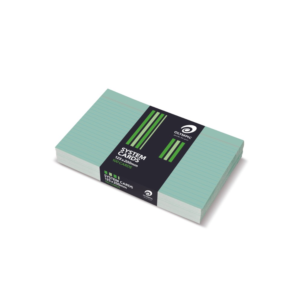 Olympic System Cards 125 x 200mm Ruled Green Pack Of 100