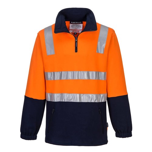 Portwest Hi-Vis Contrast 1/4 Zip Brush Fleece Jumper With Tape Medium Orange And Navy