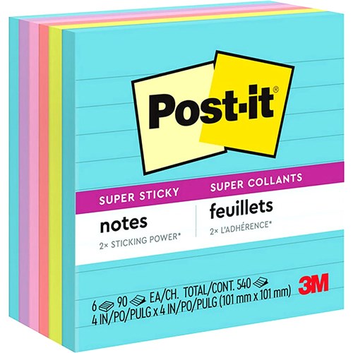 Post-It 675-6SSMIA Lined Super Sticky Notes 100 x 100mm Supernova Neons Pack of 6