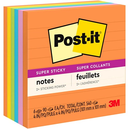Super Sticky Post-it® adhesive ensures that notes stick practically anywhere such as computer monitors, filing cabinets & furniture, and remain as easily removable as original Post-it® Notes.