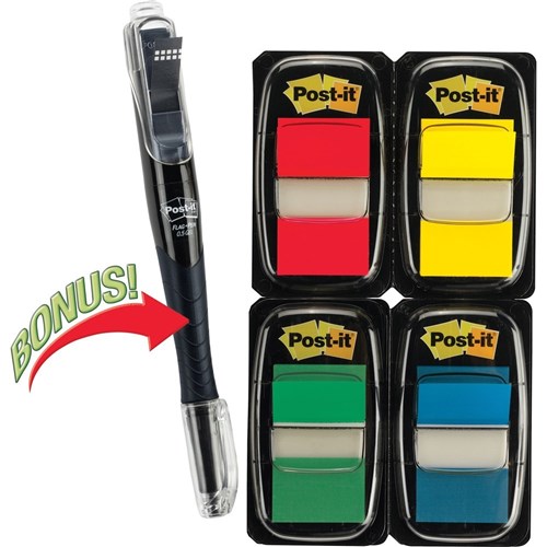 680-PPBGVA contains: 4x standard flags, plus FREE yellow highlighter. 25x44mm, 50 flags x 4 colours (200 flags total).