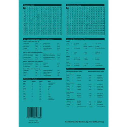 4 year calendar, activity page, maths tables & red margin.