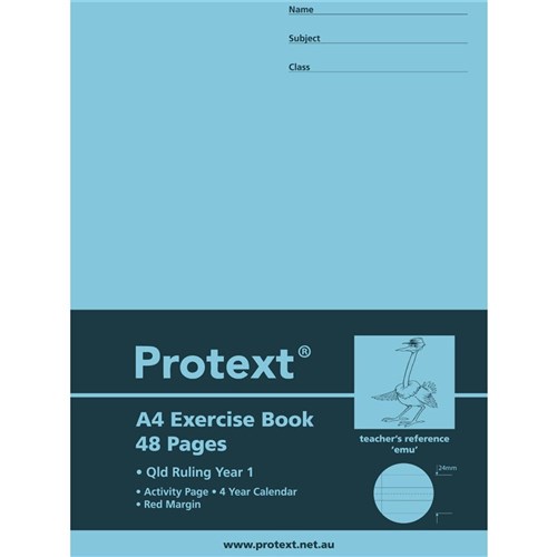 Protext Exercise Book A4 Queensland Ruled Year 1 48 Page Emu