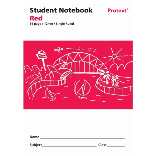 Protext Student Note Book 250 x 175mm Single Ruled 12mm 64 Page Red