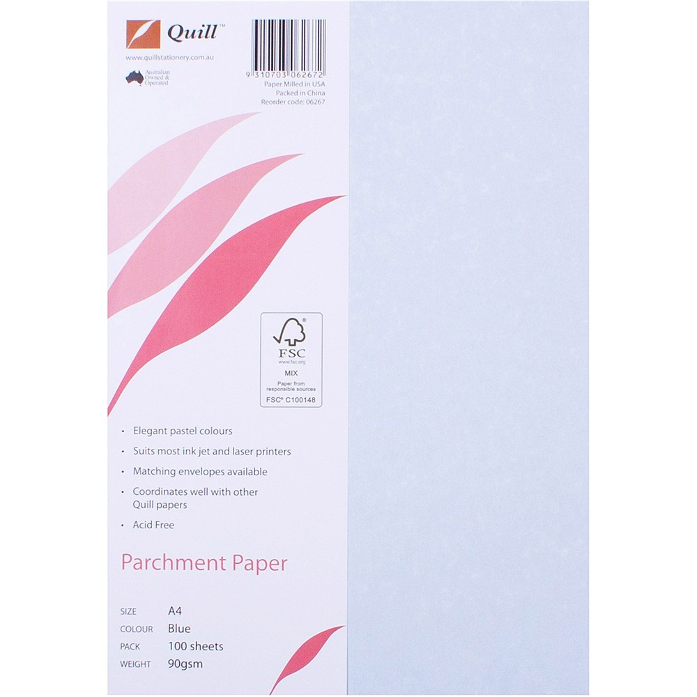 Quill Parchment Paper A4 90gsm Blue Pack of 100