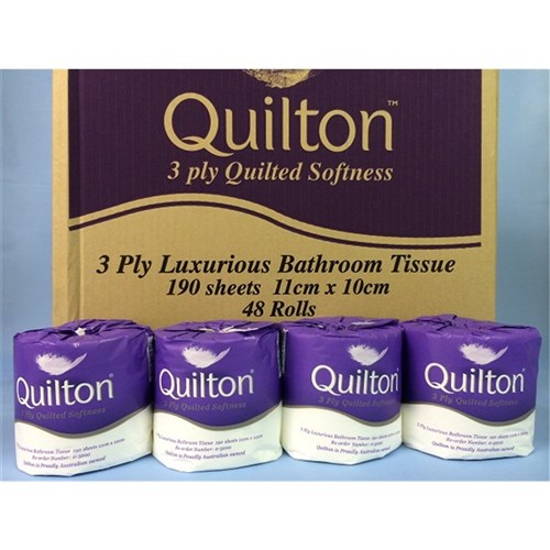 QUILTON 3PLY TOILET TISSUE 190 SHEETS PER ROLL CTN 48
