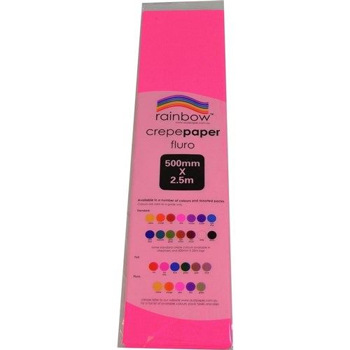 Rainbow Fluro Crepe Paper 500mm x 2.5m Assorted Pack Of 5