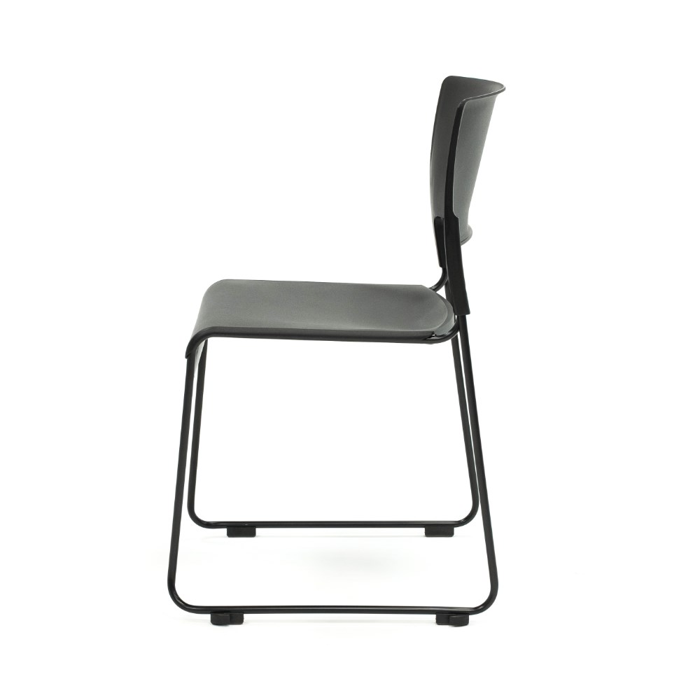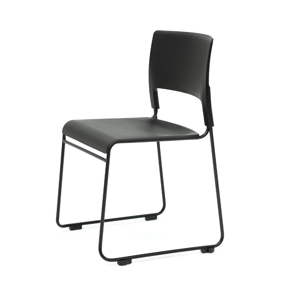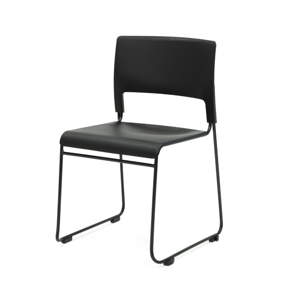 Composition: Black polypropylene seat and back rest. Robust solid steel sled base frame finished in black powder coat.