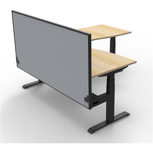 Includes pinnable privacy screen in grey fabric with matching black powder coated frame. 900mm H x 30mm T.