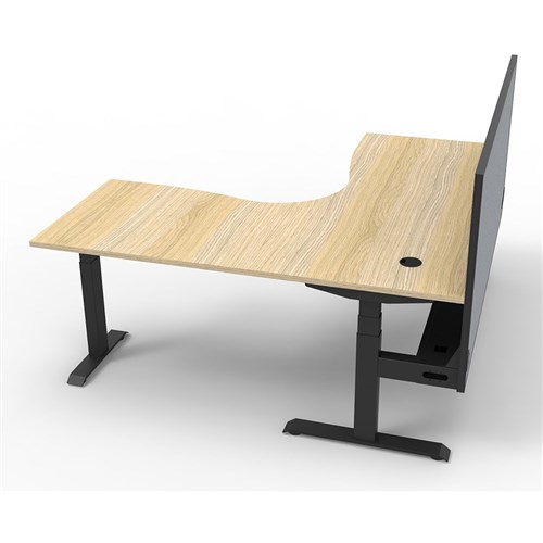 Dual Motor 3 stage motorised legs. Corner Workstation with Cable Tray and Screen.