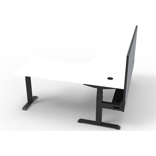 Dual Motor 3 stage motorised legs. Corner Workstation with Cable Tray and Screen.